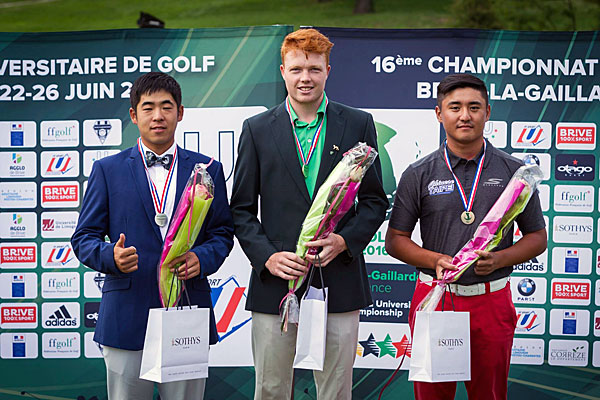 BRIVE-LA-GAILLARDE – Yesterday, 26 June, the 16th World University Golf Championship in Brive-la-Gaillarde, France came to an end. The French men’s team succeeded to keep the gold medal in the host country. The French student-golfers shared the medal podium with Team Ireland which got silver and Team Chinese Taipei winning the bronze.