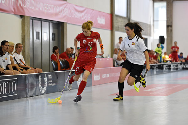 PORTO – The first day of the competition of the 7th WUC Floorball began with some overwhelming victories. In the men’s competition, Slovakia blanked Japan with 12 goals. The same happened in the women’s competition, in which Czech Republic beat Japan 16-0. The women’s team of Poland had the biggest victory of the competition so far, winning 26-0 from Spain.
