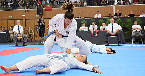 At UMinho Sports Hall, the bronze medalists stepped on the Tatami for the last time at 2pm to the female Team Kata performance.