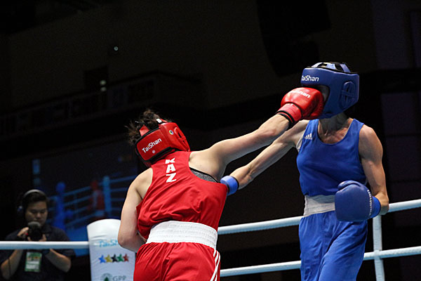 Another highlight was the men’s welterweight bout (69 kg) between Alisa Sharifov from Russia and Dmitri Galagot from Moldova. It was a vivid game as they were both standing up against each other throughout the game. In the second round, the Russian took a strong hook and got a cut at his left eyebrow, but he then successfully unleashed the counterattack opening his opponent’s eyebrow as well. In the last round, the Russian threw more punches and took the clear victory, 3-0, with the final score of 30-27, 30-27, 29-28.