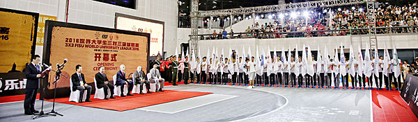 Later the day, the opening ceremony was held in Xinglin Sports Hall, a new decorated sport center.