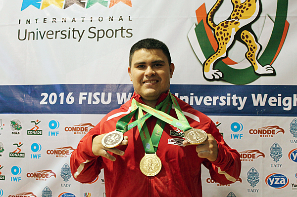 MERIDA – Mexican Óscar Verdugo Ramírez (105 kg) failed his second lifting attempt at the Clean & Jerk and lost the advantage. After this, the golden medals for this modality and the total weren’t for him; but he got the gold medal at the Snatch modality and two silver medals during the fourth day of the 5th World University Weightlifting Championship.