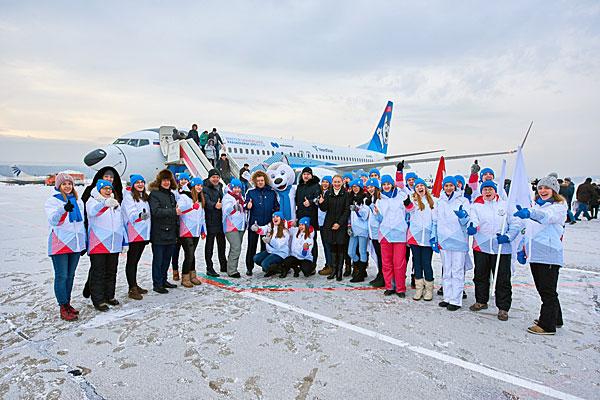 Emelyanovo Airport hosted the aircraft welcoming ceremony attended by top officials of the city and region, representatives of NordStar Airlines, the Directorate of the Winter Universiade 2019 and volunteers. U-Laika, the mascot of the Universiade became the first passenger who came off the extraordinary aircraft.