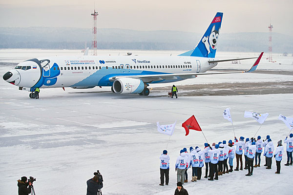 KRASNOYARSK – On 12 January, the 2019 Winter Universiade branded aircraft of the company NordStar Airlines, arrived from Norilsk to Krasnoyarsk. Upon the initiative of the MMC Norilsk Nickel, the General Partner of the 29th Winter Universiade Krasnoyarsk 2019, Boeing 737-800 was painted in the brand colours of the upcoming event.