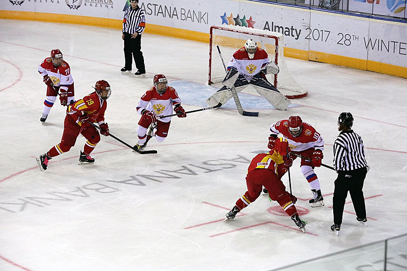 With 50 shots on goal versus 16, the Russian women’s team proved to be a valid contender for the gold medal. Leaving no room to China, the Russians set their mark already in the first period netting seven pucks. China only managed to retaliate once early in the second period. Russia added three more goals to win this game with double digits. Final score: 10-1 (7-0; 3-1, 0-0).