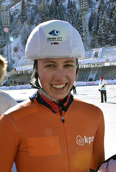 Dutch skater Aveline Hijlkema ended 9th, but was the only skater who participated in all speed skating events. “This rink is fabulous. This week we had all kinds of weather to skate”, the athlete commented in the Mixed Zone. “I enjoyed skating here on this altitude in all weather conditions. In heavy snowfall or like today under a beautiful sun. It makes it special. I skated all the distances and I’m very pleased with my performance her in Almaty.”