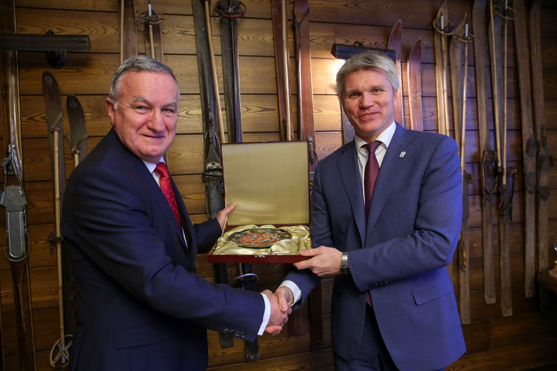 FISU Vice President and Winter Universiade Supervision Committee Chair Marian Dymalski with Pavel Kolobkov, the Minister of Sport of the Russian Federation. The FISU CTI and CSU Chairs both had working meetings Mr. Kolobkov.