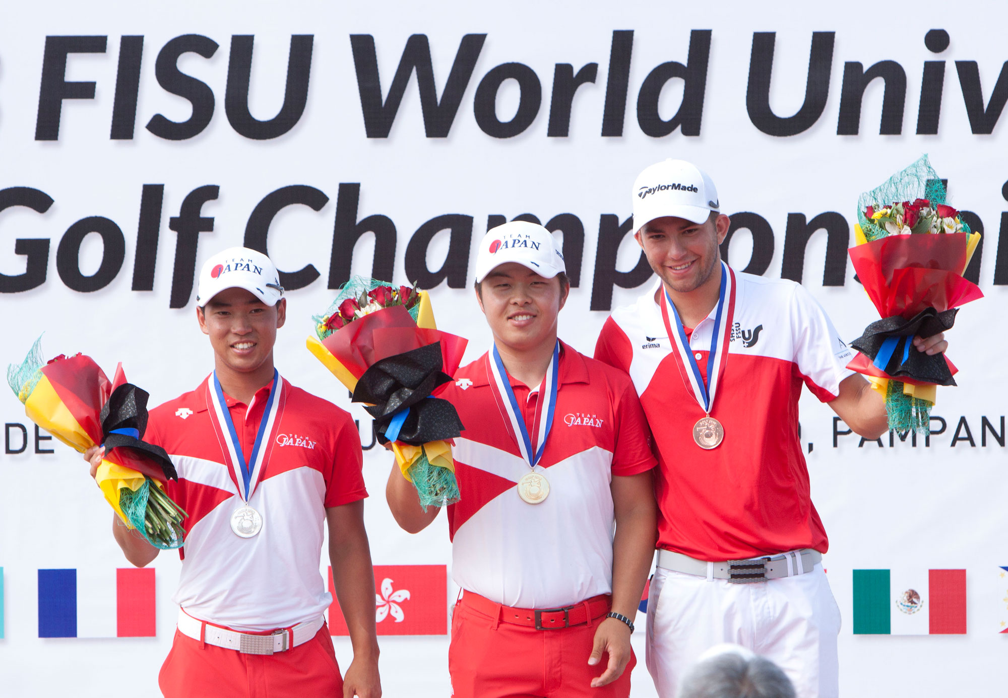 2018 Men’s Individual Winners at the FISU World University Golf Championship, from left: Yuto Katsuragawa, Daiki Imano, and Henry Tschopp