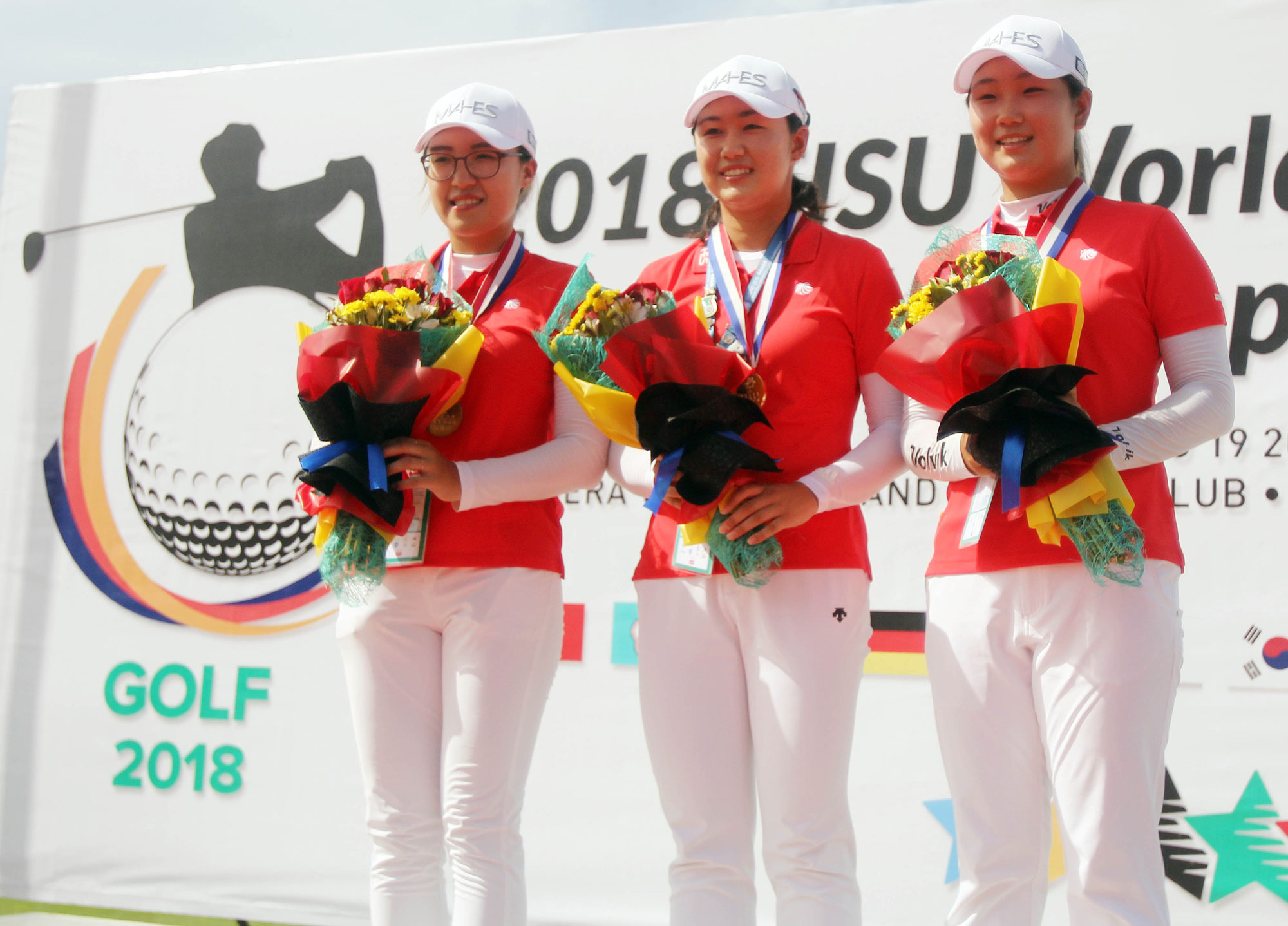The individual women’s winners from the FISU World University Golf Championship 2018, from left: Minji Kang, Dasom Ma, and Yeonjung Son