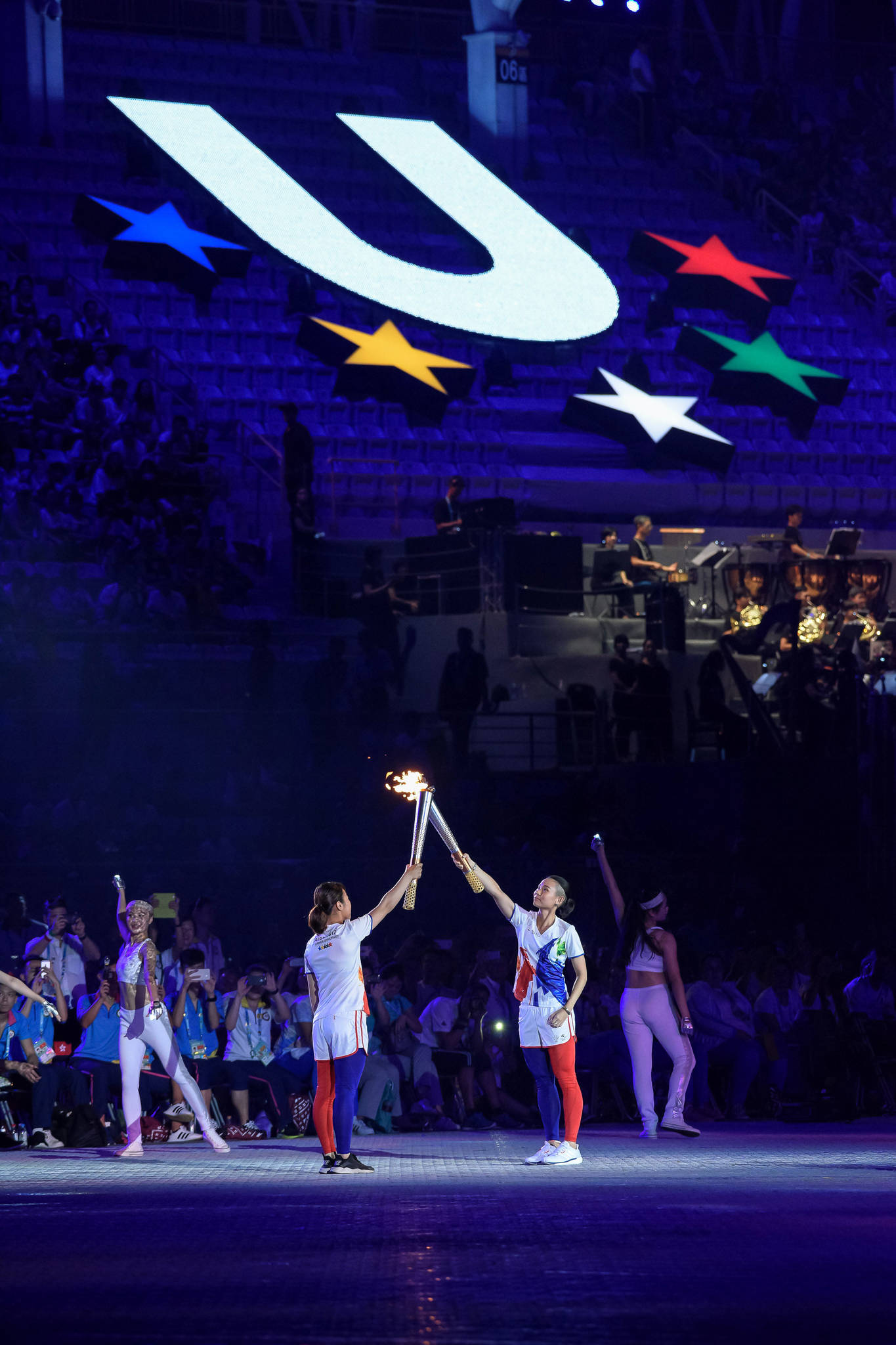The lighting of the Universiade cauldron is one of the great moments of sports
