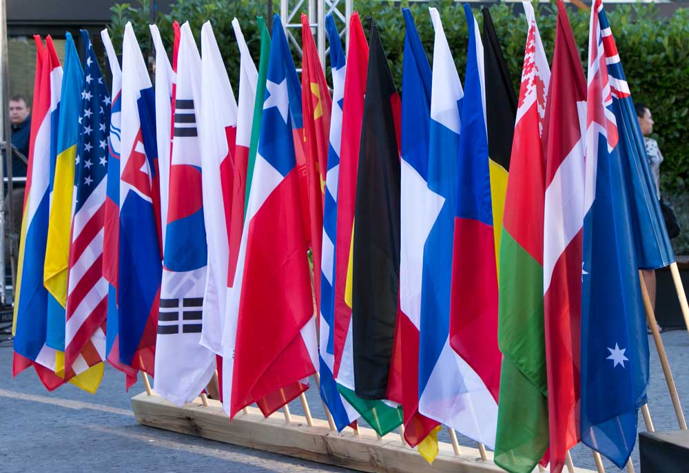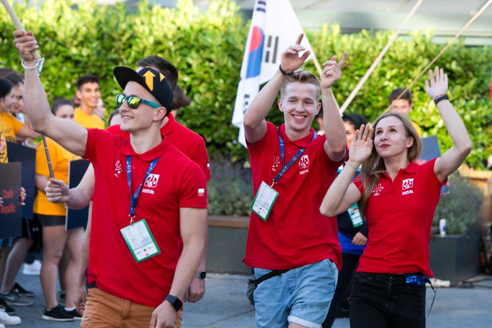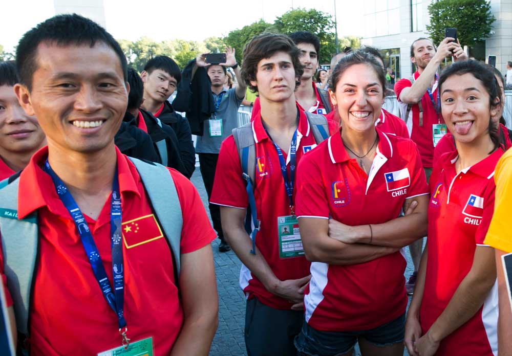 Sport Climbing participants from China and Chile during the opening ceremony at the World University Championship taking place in Bratislava, Slovakia