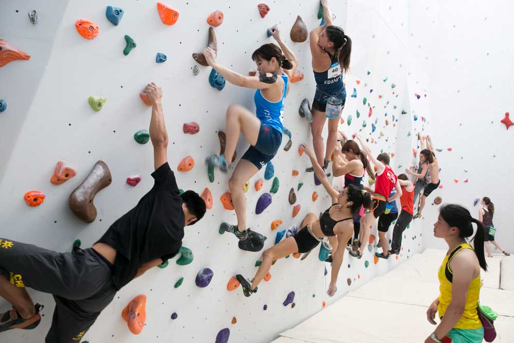 World University CHampionship competitors practicing the day before the first competition day, which took place in the Lead discipline of Sport Climbing