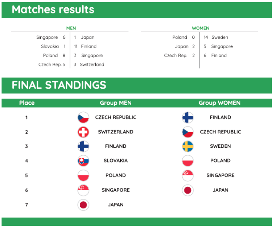LODZ, POLAND — The day began unusually early for Singapore and Japan men’s teams – and they both fought hard for a first victory – at the 2018 FISU World University Floorball Championship. The beginning was very even, with no goal scored for the entire first period. It was Japan who got on the board first, but the Singapore managed to tie and take the lead soon afterwards. With the score 3-1 for Singapore in the 46th minute, Japan still fought hard, but could not stop their opponent’s offensive game, who eventually won 6:1 and the chance to play against Poland for the 5th place.