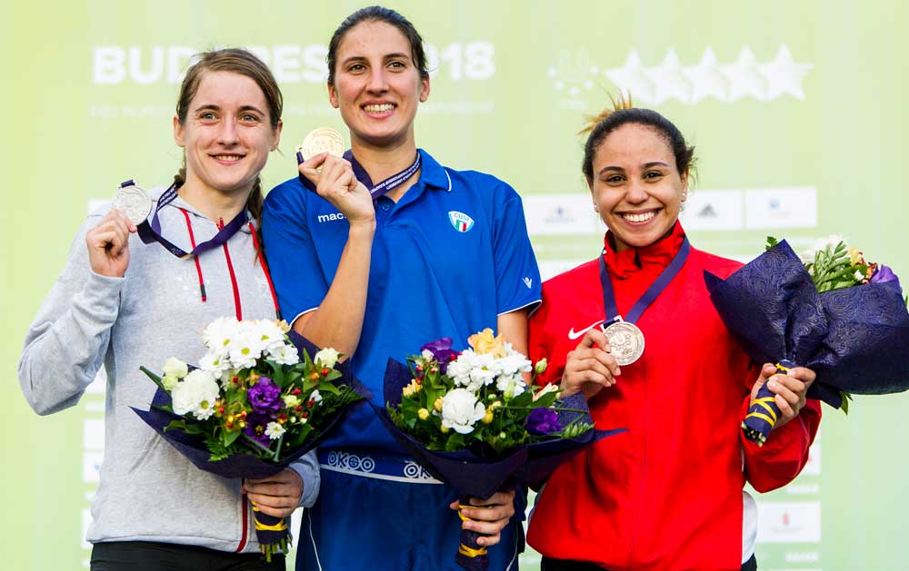 BUDAPEST — After the French triumph in the Men’s Final of the World University Modern Pentathlon Championship on Wednesday, it was the national anthem of Italy that competitors and the public heard at the end of the Women’s Final. Elena Micheli become world champion by leading at both the first event and the last as she won the swimming and the combined event, the latter with a score of 1049 points. The Italian finished ahead of Anna Maliszewska of Poland by 17 points. Rounding out the podium was Sondos Aboubakr of Egypt with 1027 points.