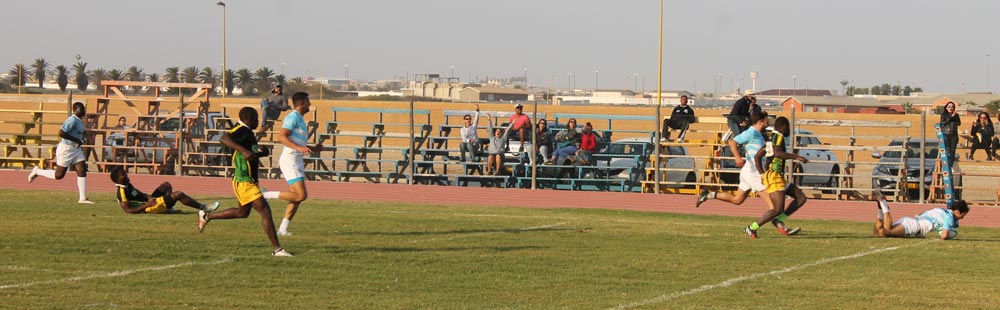 Argentine on the attack against the Ugandans at the 2018 WUC Rugby Sevens in Swakopmund, Namibia