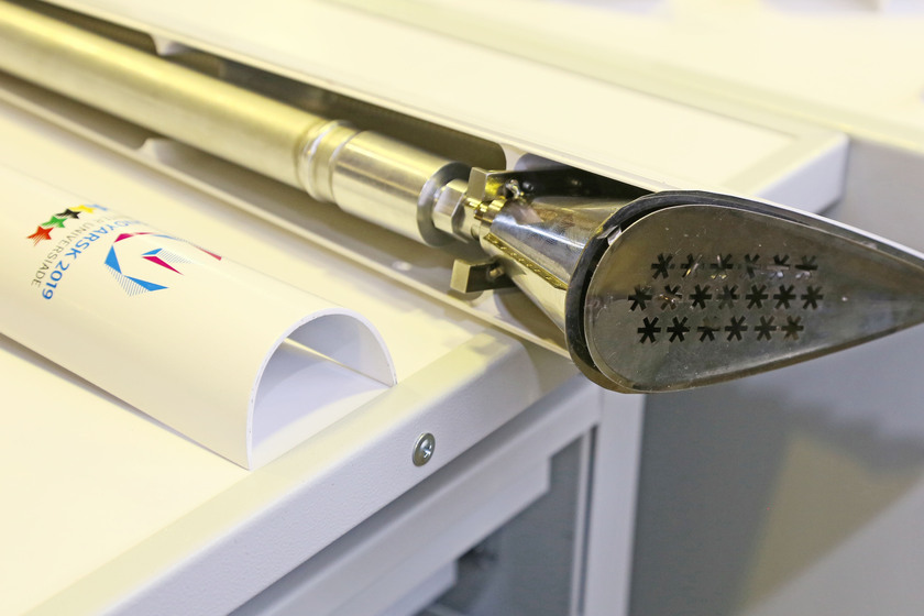 The torch was officially presented at the Variant-999 plant in Krasnoyarsk, where it was assembled. During the presentation, the different modes of the torch burning were demonstrated; including how it will burn even in severe weather, when a torchbearer runs through rain and strong wind. Remember, the Krasnoyarsk 2019 Winter Universiade promises to be ‘Real Winter, Real Sport’.