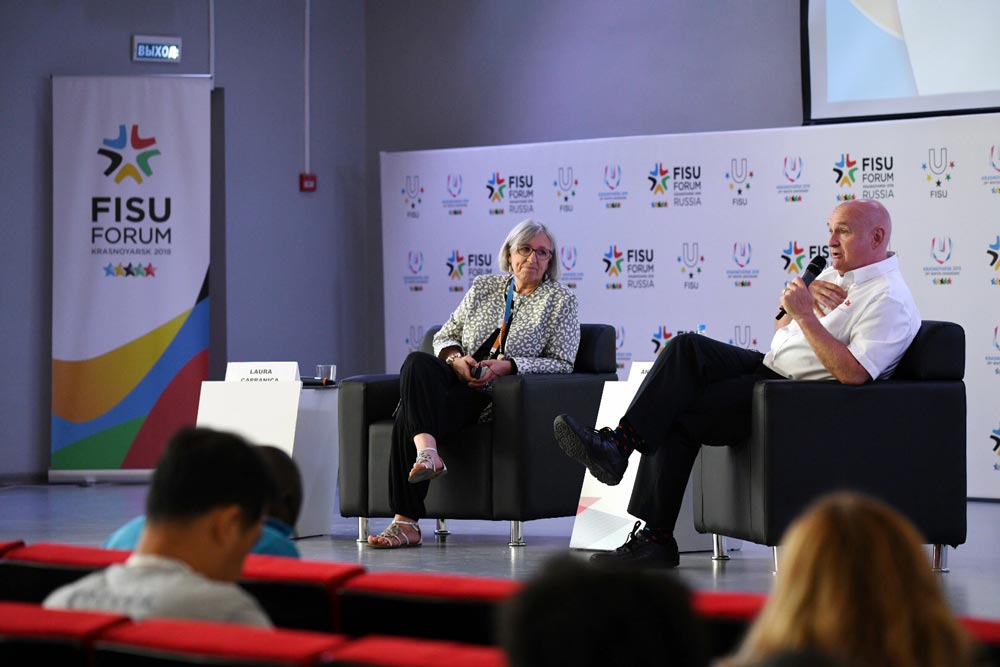 KRASNOYARSK, RUSSIAN FEDERATION – Combine an enthusiastic singing and dancing performance from Israel with the taste of Australia’s favorite sandwich spread, a Muaythai show fight and British Universities & Colleges Sport University representatives putting fancy stickers on everyone that passes by their booth. What you’ll get is the Forum Fair, a characteristic event placed within the schedule of each FISU Forum. This year’s edition on day four in the heart of Siberia with presentations like those mentioned above amongst many others was nothing short of another highlight of the five-day educational event in the future Winter Universiade host city.