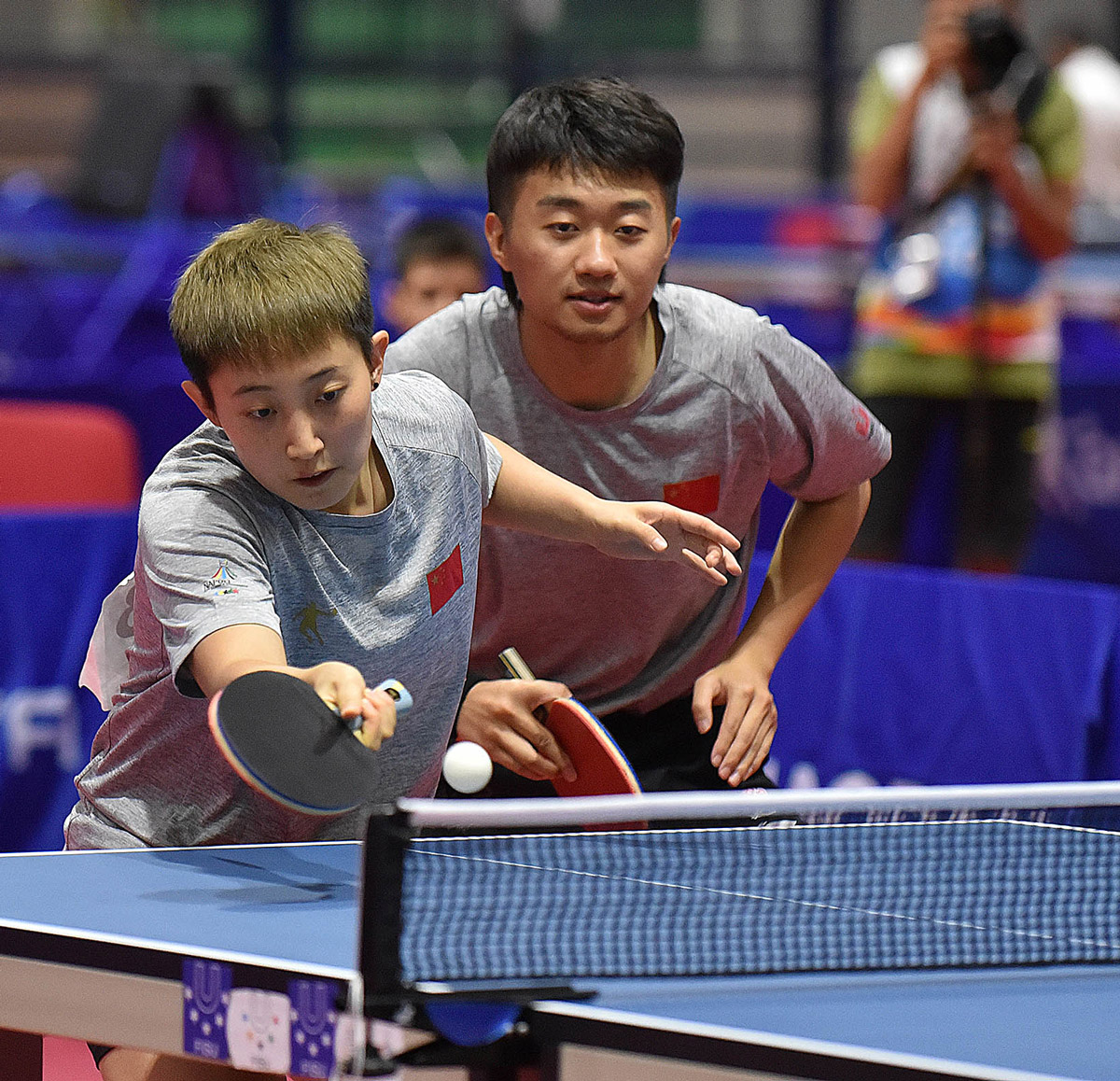 After eight days of competition, the two Chinese athletes each won four gold medals – in singles, doubles, mixed doubles and team – helping to lead team China to nearly a clean sweep of the table tennis events here in Napoli with 7 gold, 5 silver and 3 bronze as the final tally.