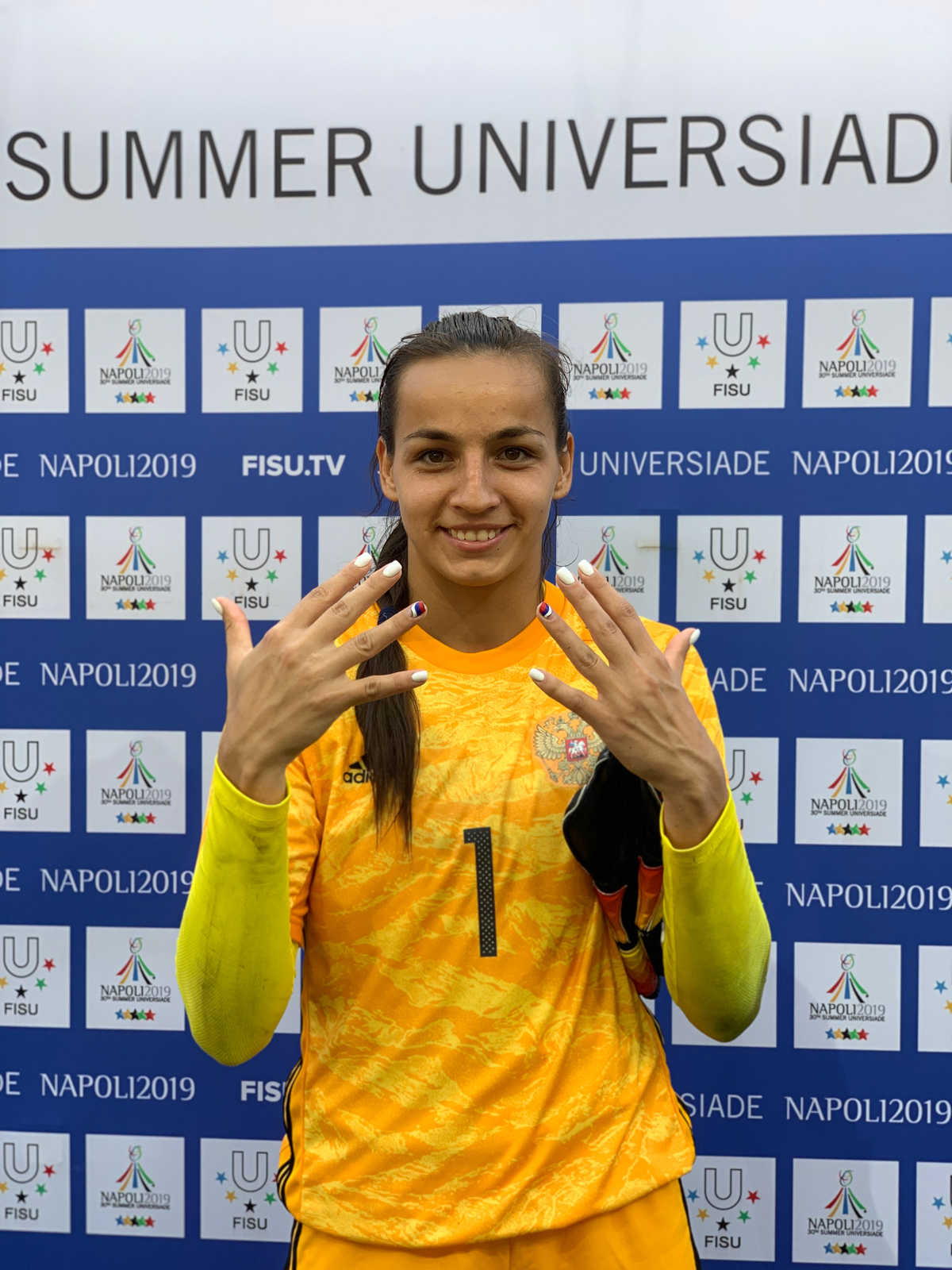 To celebrate this chance to be at the Universiade, goalkeeper Shcherbak even had a special manicure, with the colours of the Russian national flag on her nails (below).
