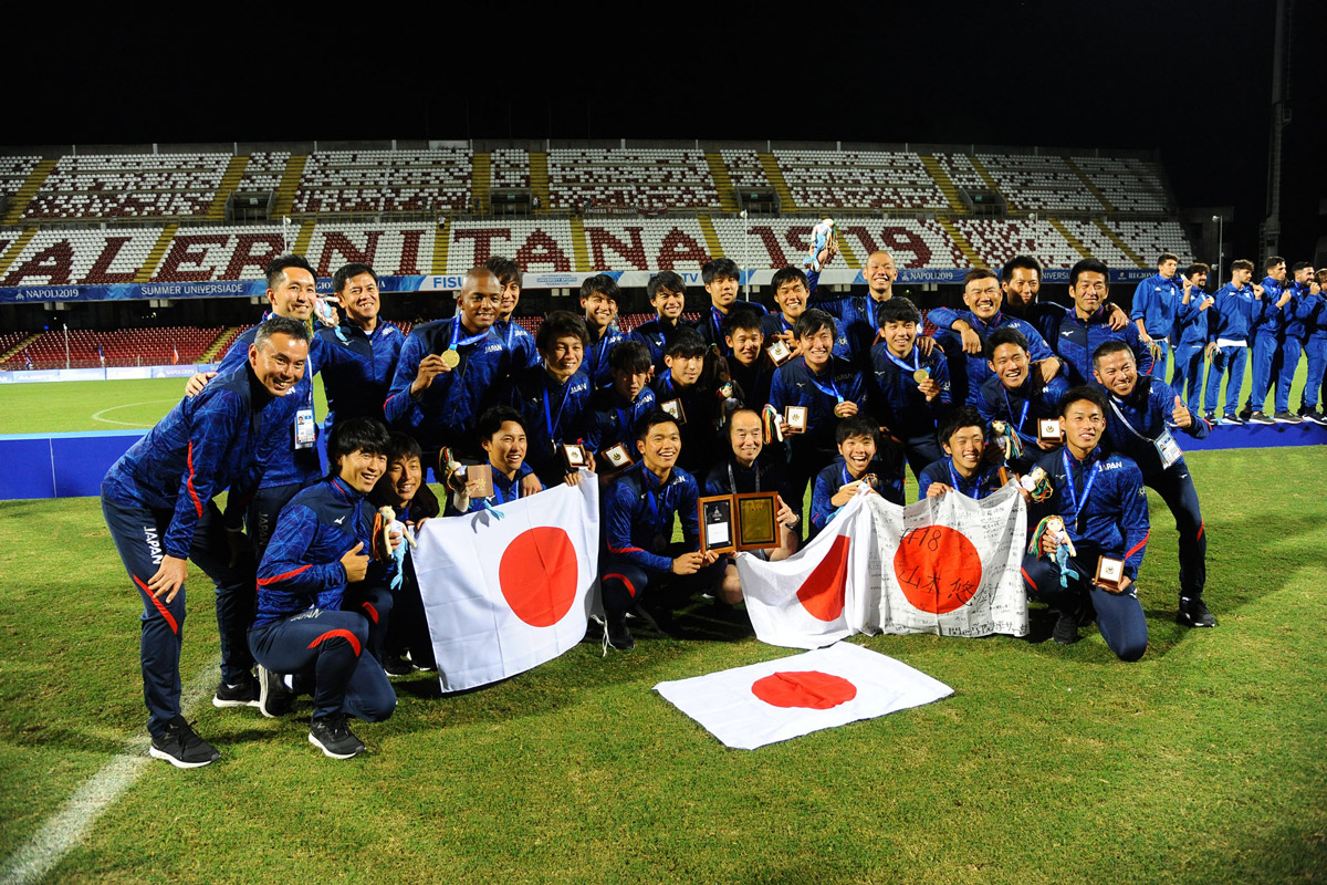 NAPOLI, 13 July – There were jubilant scenes tonight at Stadio Arechi as Japan clinched the Napoli 2019 Summer Universiade men’s football title, beating Brazil 4-1. Striker Ayase Ueda was the star of the show as he grabbed a second half hat-trick to sink the Brazilians, with captain Reo Hatate also on the scoresheet for the champions.