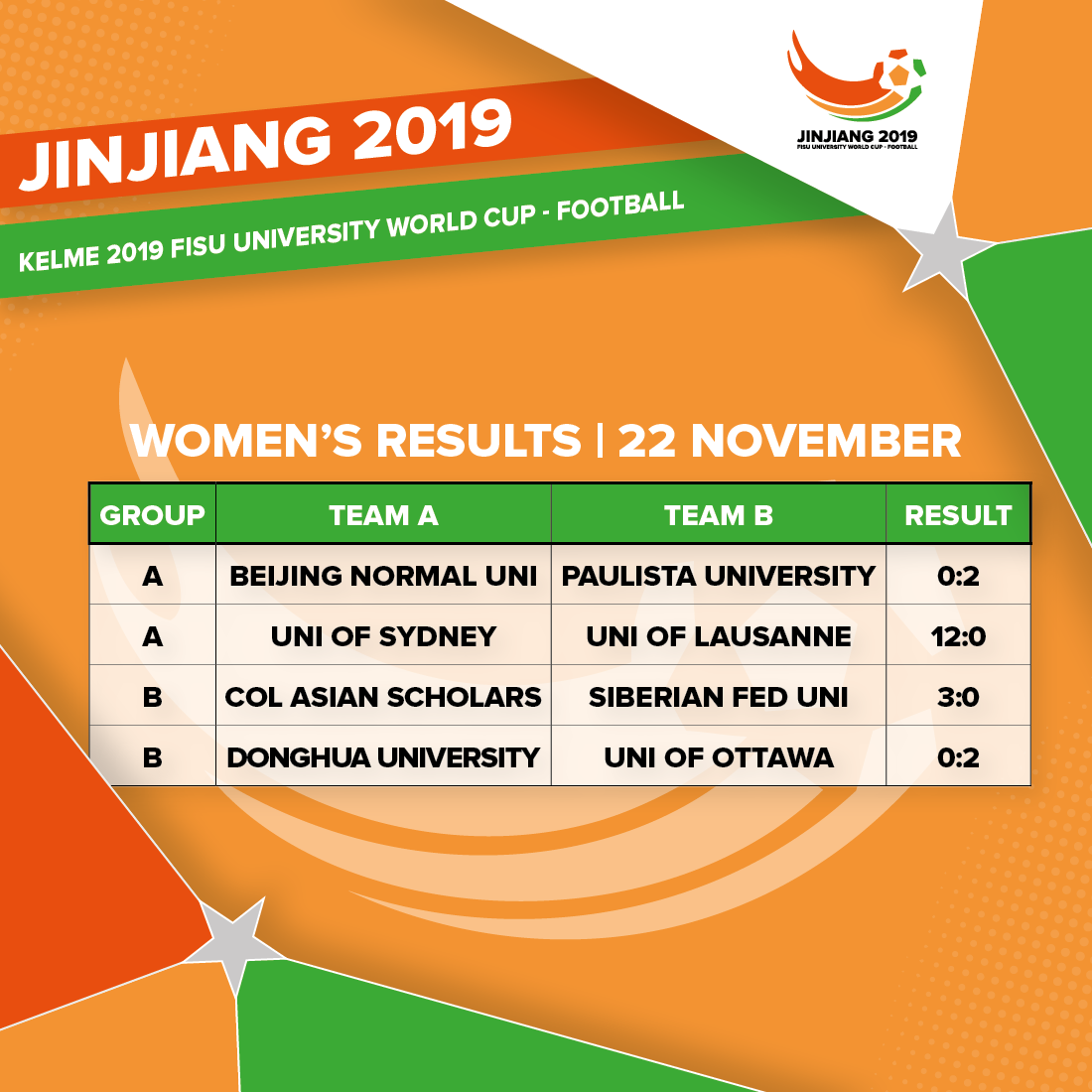 A day after the men’s tournament opened, eight women’s teams came out to play their first group games of the KELME 2019 FISU University World Cup – Football. Paulista, winners of the continental qualifiers that paved the way for these world finals, had their task cut out against a gritty home team.