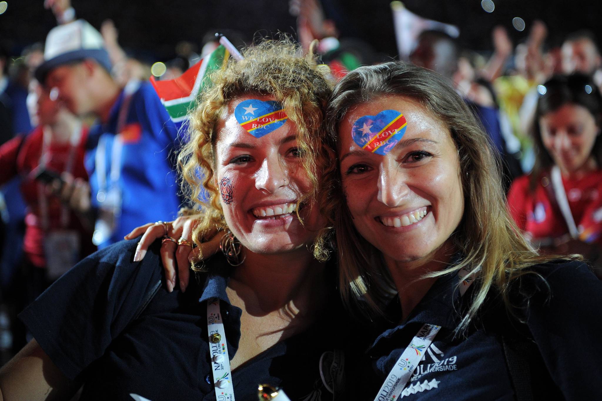 Student-athletes and sports management professionals living in the moment during the closing ceremonies to the Napoli 2019 Summer Universiade