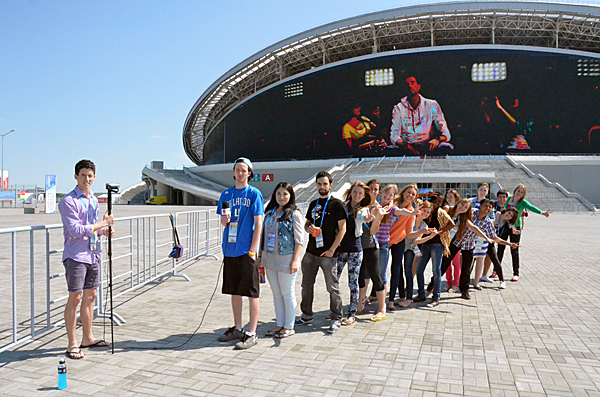 The FISU Young Reporters together with their Russian peers posing in front of the Kazan Arena with the MMC, their temporary ‘home’ in Kazan in 2013In total, the programme will recruit 20 international candidates, of which 16 will be selected by FISU and the International Sports Press Association (AIPS) through the application process detailed here.