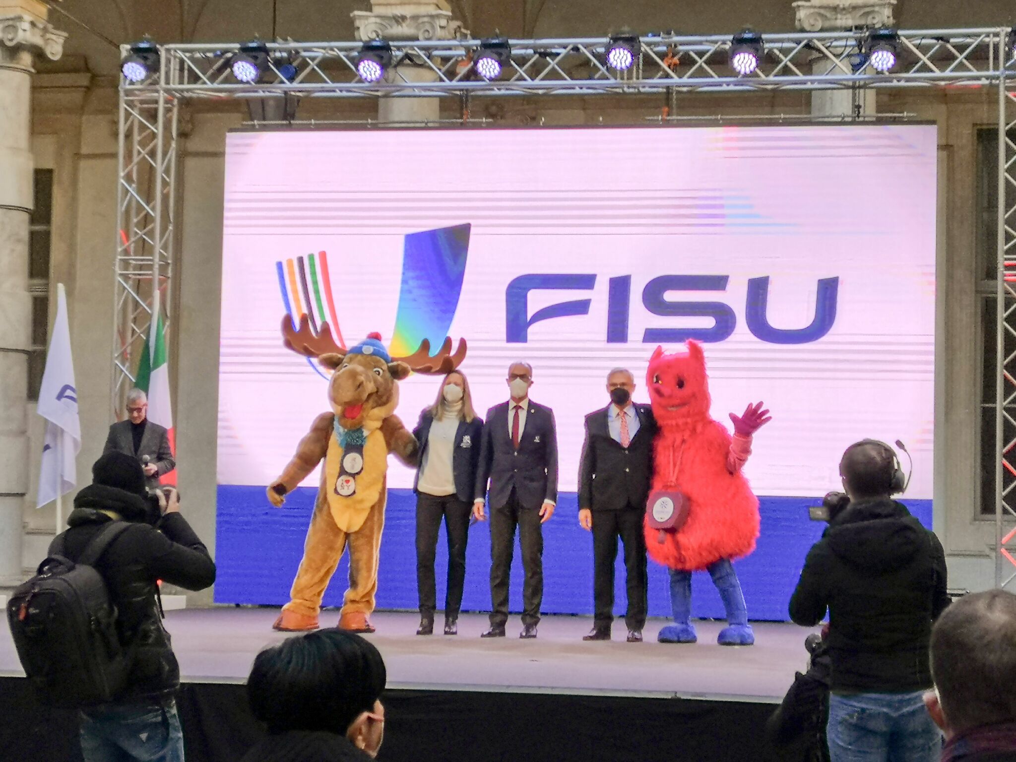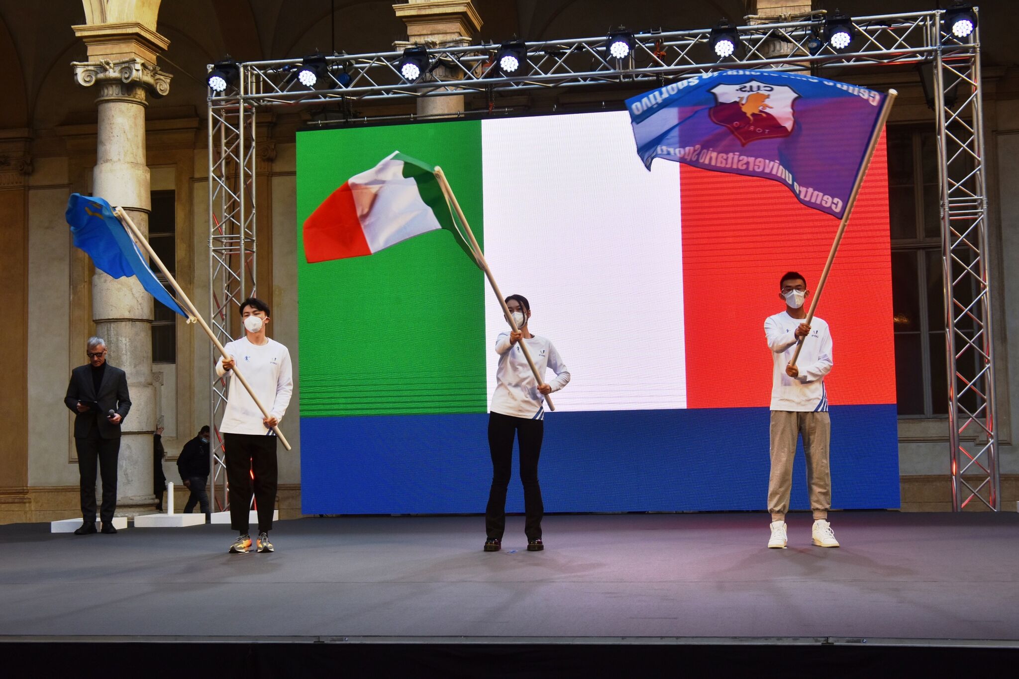 Leonz Eder, FISU Acting President, Eric Saintrond, FISU Secretary General/CEO, the Rector of Torino University, Guido Saracco, the Rector of Polytechnic University, Stefano Geuna, the Rector of Torino University, Stefano Lo Russo, Mayor of Turin, Maria Grazia Grippo, President of the Turin City Council, Fabrizio Ricca, Piedmont Councillor of Sport, Riccardo D’Elicio, the CUS Torino President and Lorenzo Lentini, the CUSI representative, Alessandro Ciro Sciretti, President of the Organising Committee (OC) of the Turin 2025 FISU Games and President of EDISU Piedmont, along with representatives of the Lucerne 2021 and Lake Placid 2023 OCs, students and volunteers were all present for the ceremony.