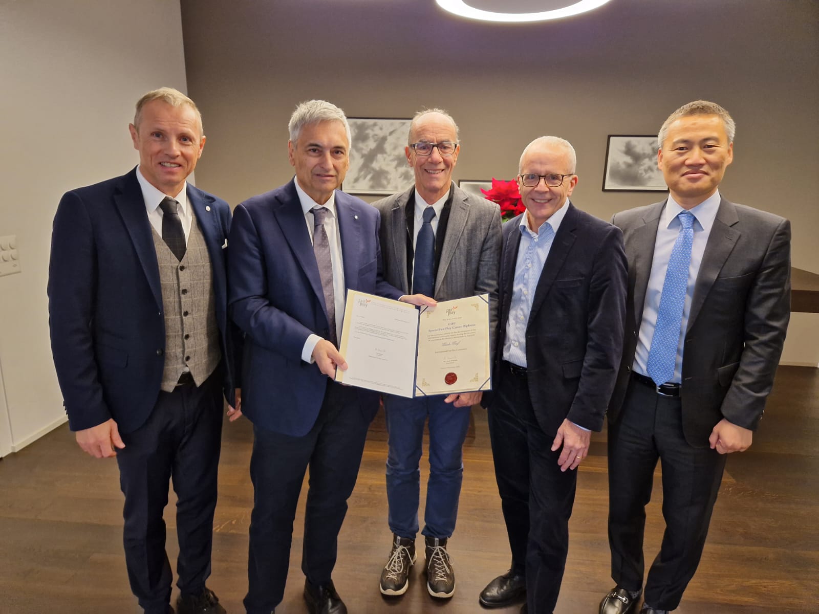 On behalf of the International Fair Play Committee, FISU Acting President Leonz Eder handed over the Special Fair Play Career Diploma to Mr. Guido Graf today in Lucerne.