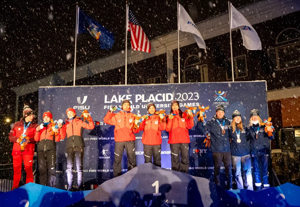 Team Japan 1 captured gold on Thursday in the Mixed Team Nordic event, a competition connecting Nordic combined, ski jumping and cross country skiing and making its FISU World University Games debut at Lake Placid 2023.