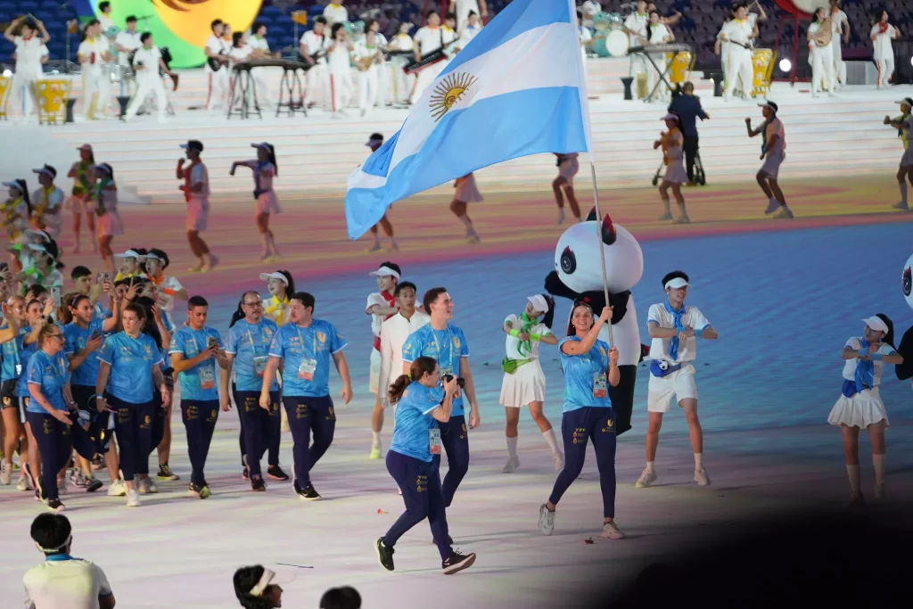 The dream of every athlete is to be their country’s flag bearer at an international competition. This dream came true for over 100 student athletes at the opening ceremony of the Chengdu FISU World University Games, held Friday evening at the Dong’an Lakes Sports Park Stadium.