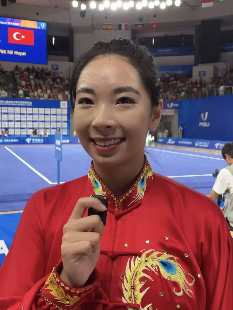 Full focus is required by wushu athletes as they are setting an imaginary enemy in their mind and showing the connotation of offence and defence with different movements and punches. “My coach told me I have to keep calm. I think the guidance on adjusting our mood before the performance is very important for the stunning performance I’ve just given,” Maoyuan said.