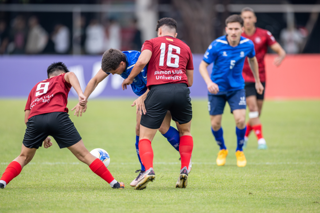 Their first hurdle was the Spaniard team of Ramon Llull University, a wild card with ambitions. And this showed on the pitch. With two teams fully neutralising each other, the match was tight and rough. And scoreless. While both the defending champions and their today’s opponents have undeniable high technical skills, fluidity and classy actions are not what the 1150 spectators present in the Quanzhou Vocational and Technical University will remember.