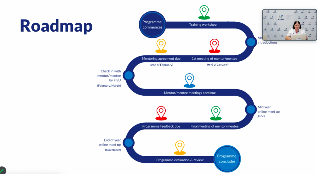 Two participants provided their views on what they feel makes for a successful mentoring relationship. Paiwast Amanj, from Iraq, said, “The experience and meeting new people and friends are the main things that drove me into working with FISU and still drive me to hop out of my comfort zone and learn as much as I can.” Uganda’s Bridget Umutoni added about her wishes for the programme, “Connecting with someone new and learning from a person’s experience who is in a circle or place that I want to be in.”