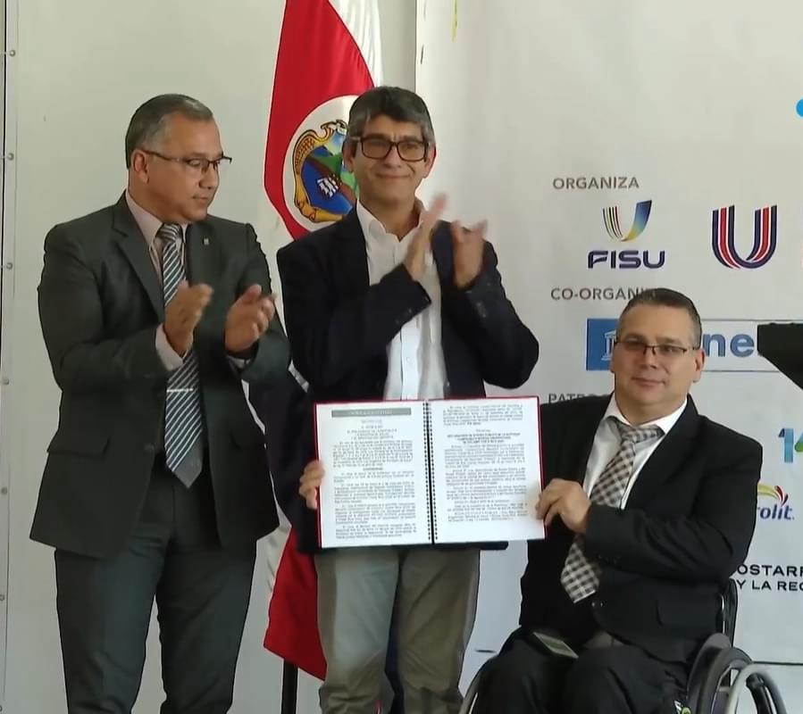 The event was attended by Rosaura Mendez (National Parliament Congresswoman, Organizing Committee President, and FISU Executive Committee Member), Gerardo Corales (University Sports Federation of Costa Rica President), Donald Rojas Fernandez (National Director of Sports ICODER), Oscar Avila Kopper (Costa Rican Cycling Federation FECOCI President), Gian Carlo Protti (ITCR Rectory), Flora Ballestero Quiros (Cantonal Sports and Recreation Committee President), and Jorge Rojas (National Parliament Congressman). The highlight of the session was undoubtedly the official declaration of the 2024 FISU Championship Cycling as an event of national interest.