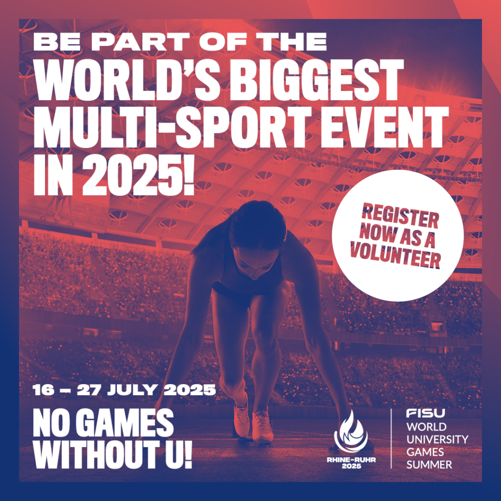 The volunteers will be a fundamental factor in making the Rhine-Ruhr 2025 FISU World University Games a colorful, upbeat and international festival. In return, they will each receive a behind-the-scenes view of a huge multi-sport event, free access to competition, a ticket for local public transport, a volunteer outfit, and unforgettable experiences and adventures with people from all over the world.