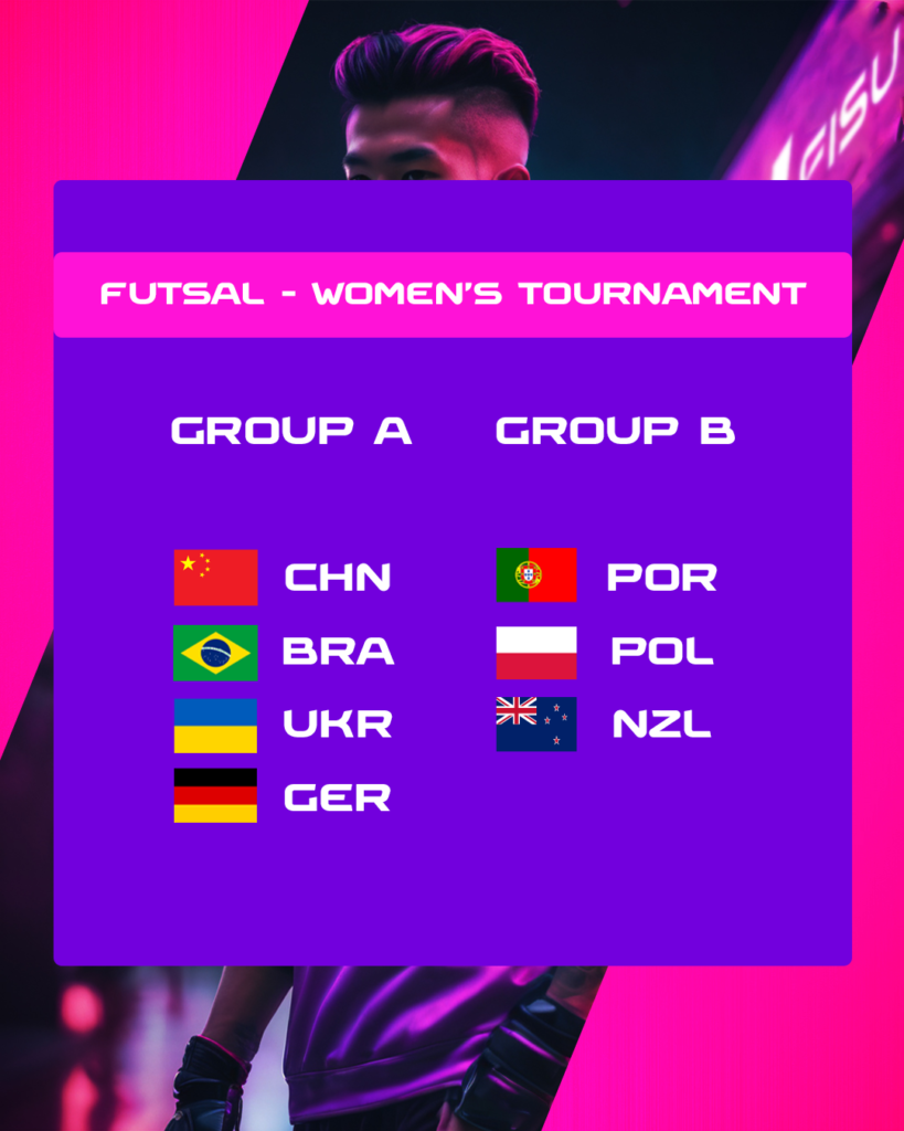 With a smaller representation of countries, the women’s participants are only divided into two groups, lead respectively by China and Portugal, the top two ranked teams, according to the 2022 FISU World Cup Futsal results.