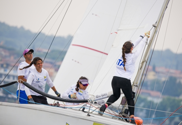 Sixteen competing teams, made up of around ninety sailors and representing the fourteen nations registered, divided into two fleets made up of eight Dolphin 81s identical in performance and all equipped with new sails, completed three races on the first day of competition. Alec Coleman’s Canada topped the rankings just one point in front of Ange Delerce’s France and six points ahead of Samuel King’s Australia and Alessandro Archetti’s Italy 1.