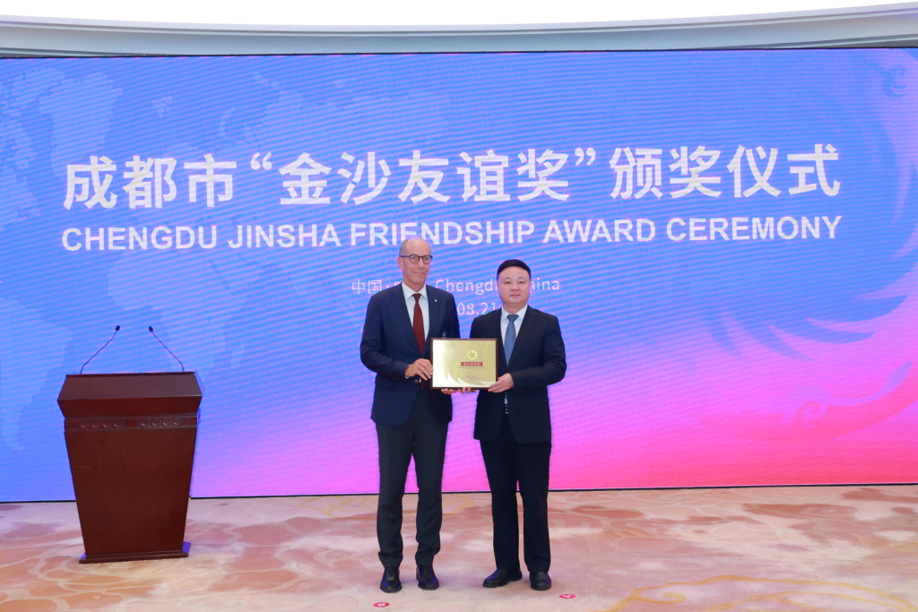One of the highlights of this visit was that the President Eder was honored with the prestigious Jinsha Friendship Award, a recognition bestowed by the Chengdu Municipal Government to foreign individuals who have made significant contributions to the city’s development. In his acceptance speech, delivered on behalf of all awardees, Eder reflected on the profound connection between the award and Chengdu’s heritage.