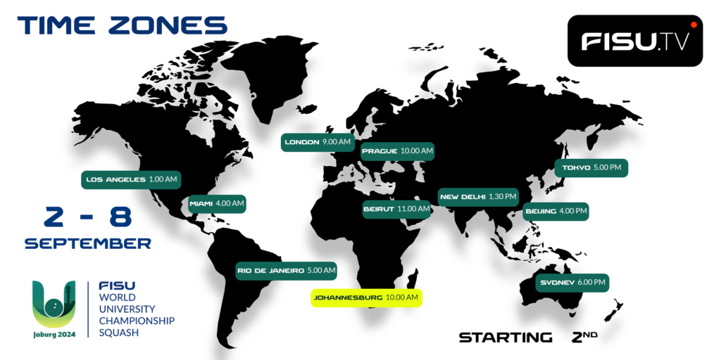 The University of Johannesburg is hosting this 2024 FISU World University Championships Squash and the games will be played in the two following locations: Parkview Squash Centre and the Wanderers Squash Club.