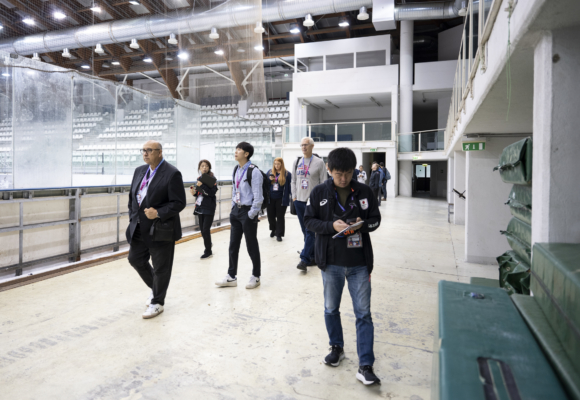 First on the list, the beautiful Palavela, which will host the short-track speed skating and figure skating competitions and where the future Main Media Centre will be located. In the middle of the ice, the FISU logo already shows the colours of the festivities to come. The group then moved on to visiting the two FISU Games Villages where the student-athletes will be accommodated in Torino.
