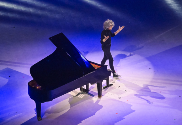 The evening offered a perfect mix of action – acrobatics, energetic dancing, plenty of fluorescent lights and effects and amazing acts by circus artists and magicians – and of poetry, with a little boy walking amongst all these acts with his pillow in his hand and a breath-taking piano act by Giovanni Allevi, one of Italy’s most renown artists.