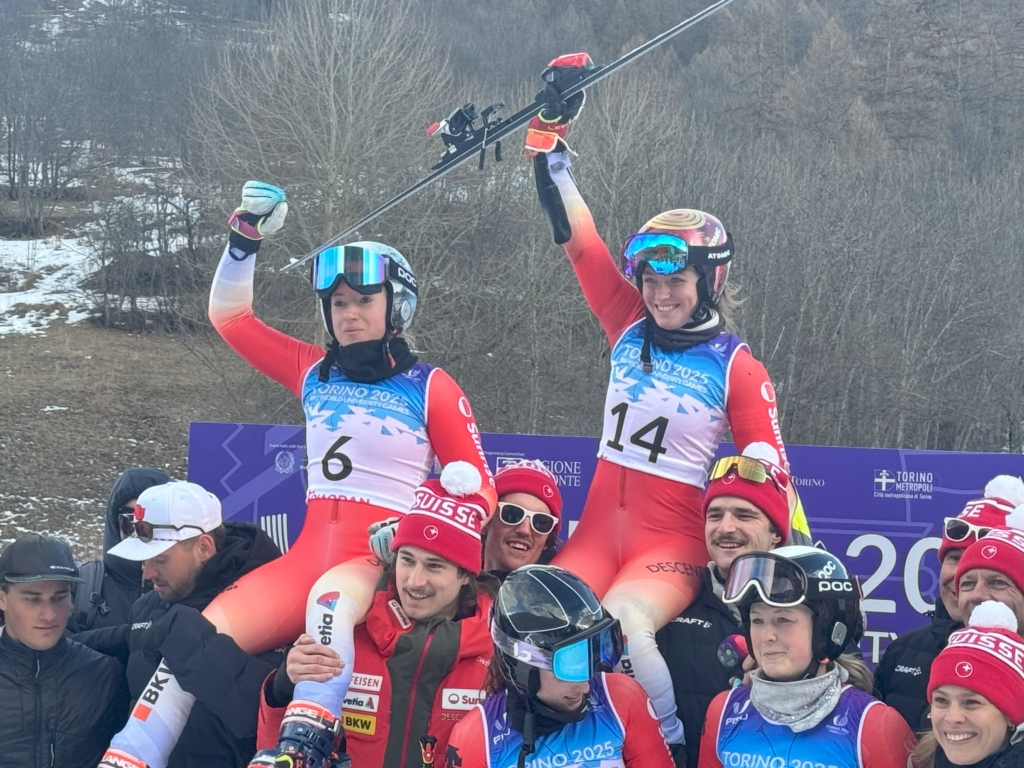 After the medal ceremony, Piller and Darbellay were lifted high into the air by their jubilant teammates. The team celebrated in front of the FISU Games backdrop, making it a truly memorable moment for Swiss alpine skiing.