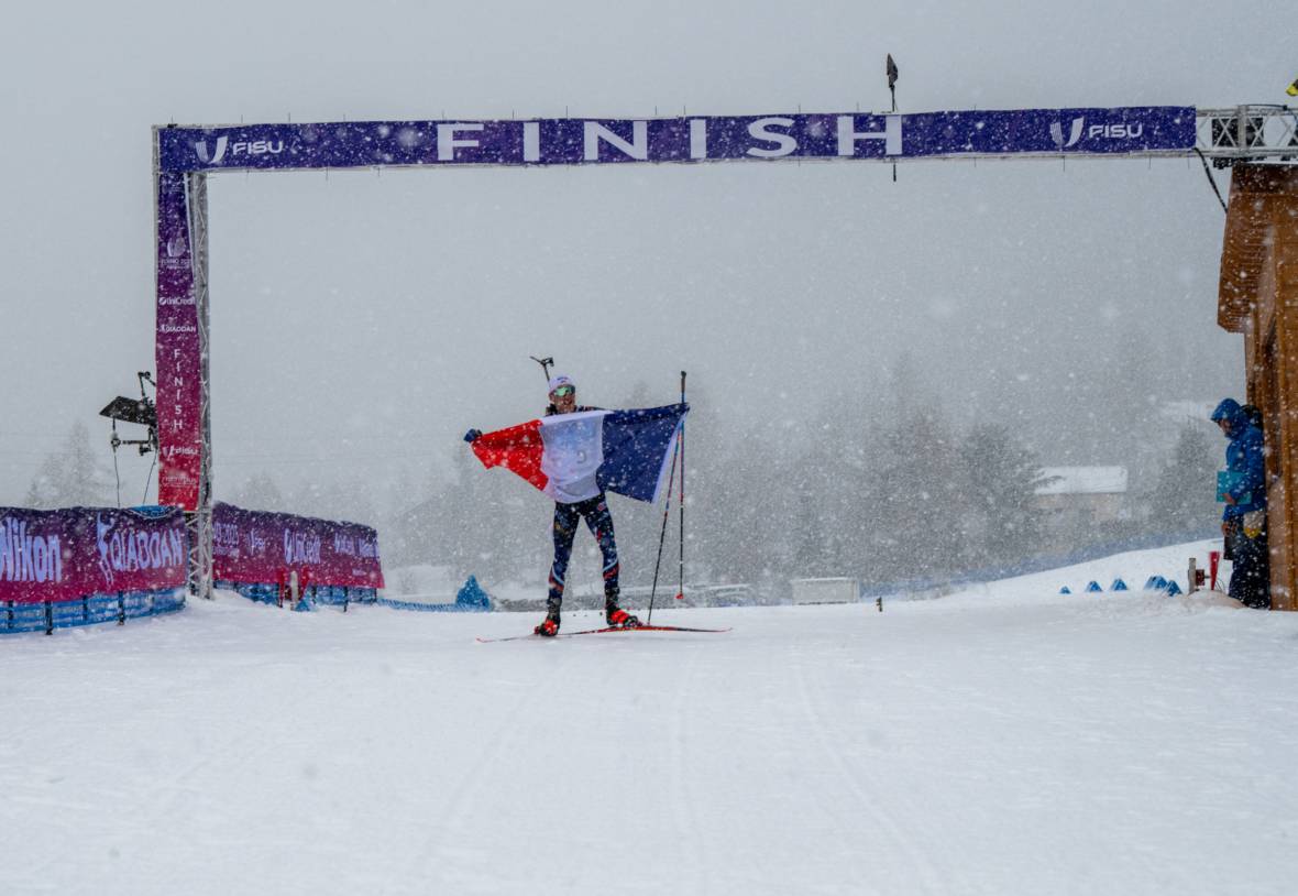 “It feels so good to integrate with the smiles and the flag. It was amazing,” said the 20-year-old gold medallist Nathanael Peaquin, a student from Aix Marseille University. Growing up in the Mediterranean metropolis, Nathanael loved sports and played football until the age of 12, at which point he was drawn to biathlon. “This is my first international competition, and I never thought I’d win a gold medal — it feels incredible!”