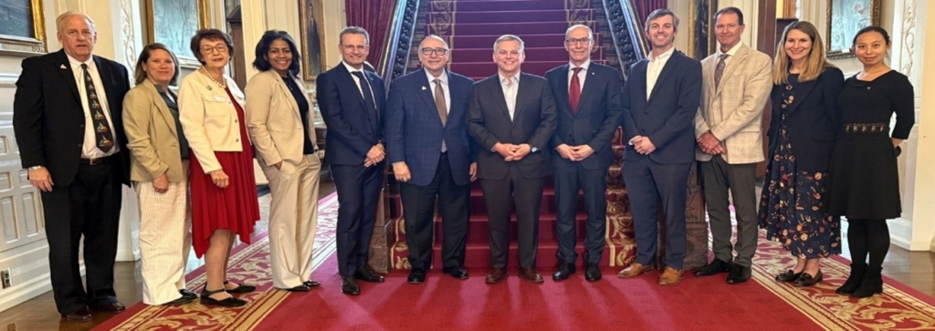 One of the highlights of the trip was a chance for the FISU delegation to visit with North Carolina’s new governor, Josh Stein, at the Executive Mansion. Joining the Governor for the meeting were Secretary of State, Elaine Marshall; Jordan Whichard, Chief Deputy Secretary, and Mark Poole, Director of Commerce Finance, of the North Carolina Department of Commerce; and Christie McNeill, Deputy Chief of Staff and Chief Operating Officer in the Governor’s Office. Representing NCOC were Hill Carrow and Jen Keurulainen, Sports Director for the 2029 FISU World University Games.