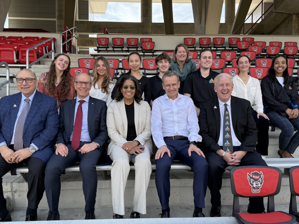 “To be among one of the first major international trips by the new FISU CEO to visit the host of the organisation’s largest event is quite an honour and speaks well of North Carolina, the U.S., and our Games Organising Committee,” said Hill Carrow (front right) Chairman & CEO of NCOC and the 2029 FISU World University Games. “We were impressed with Matthias. He has just become the head of one of the world’s largest sports organisations, and though only on the job for a few months, has hit the ground running with both a good grasp of the business side of a mega-event like the World University Games, but also forward-thinking plans regarding how to take both the Games, and FISU itself, to the next level.”