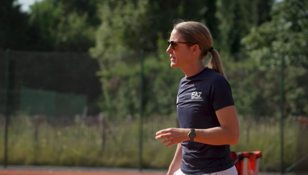 Gina Dittman also started tennis really young, at only six years old. At the time she also practised field hockey and then switched to football. “Watching you move on the court, it is obvious to me that you have done other sports”, comments Justine Henin who coached Gina on court before chatting to her at the club house. ” You are very energetic, very dynamic. I can see that you want to play an agressive tennis. You like using your backhand the most, that is for sure. But if you trust it more, I am sure that you will be able to also cause problems to your opponent with your forehand!”
