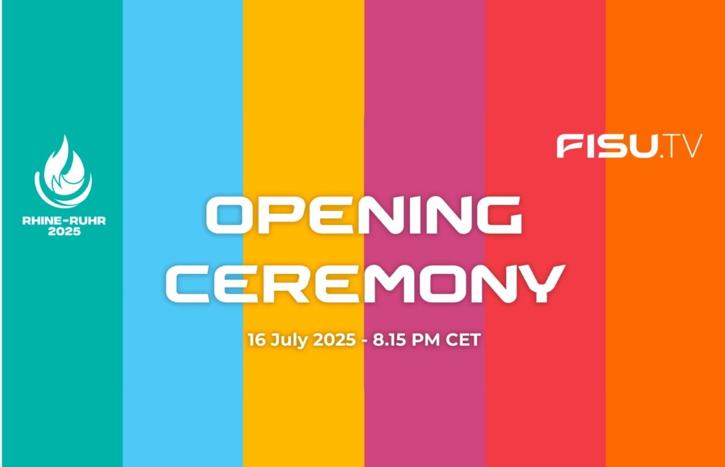Next up… The Rhine-Ruhr 2025 FISU World University Games Opening Ceremony, with many live music acts, cultural legacies, the student-athlete’s parade and of course, the lighting of the flame. Don’t miss it!