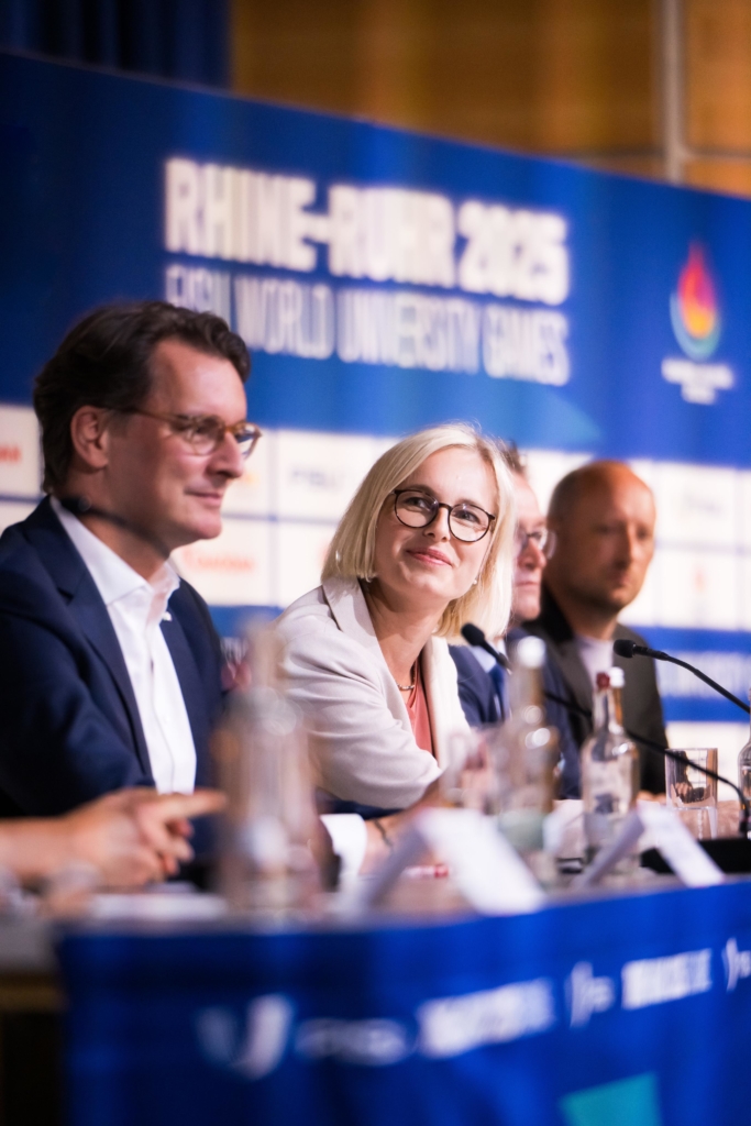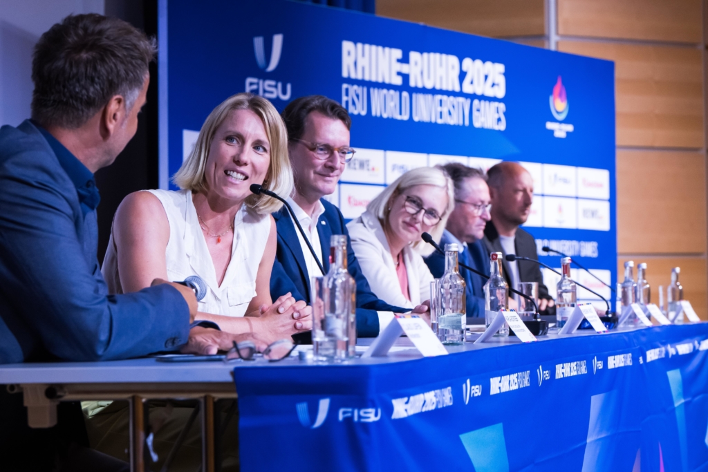 Karla Borger, former beach volleyball Olympian and chair of the board of trustees of the Rhine-Ruhr 2025 FISU World University Games, also spoke about the importance of the FISU Games: “This event is more than a competition. It has a unique spirit, a combination of performance, openness and connection.”