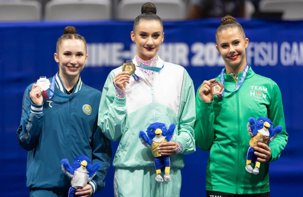 After completing the hoop and ball routines on Thursday, 17 July with small mistakes, she competed in clubs and ribbon on Friday, earning individual all-around bronze behind neutral athlete Alina Harnasko, who claimed gold, and Takhmina Ikromova from Uzbekistan.
